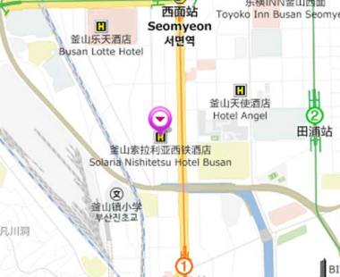 交通出行更是优势凸显:距离地铁 1、2 号线交汇的西面站仅 300 米,从酒店步行 3 分钟便能进站。搭乘 1 号线可直达 “国际市场”,感受复古市集的烟火气;换乘 2 号线无需出站,可直达 KTX 釜山站,方便前往其他城市;搭乘 1 号线再换乘东海线,还能直达海云台海水浴场,无需频繁换乘,轻松串联热门目的地;从酒店步行仅 2 分钟就能抵达机场大巴 6003 路站点,大巴每 15 分钟一班,约 50 分钟直达金海国际机场,往返高效省心,为出行省去诸多麻烦。