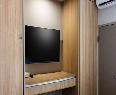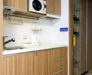 房间设施:客房宽敞,设计类似民宿,配有带微波炉和冰箱的设备齐全的小厨房,还设有办公桌、平板有线电视、吹风机等,部分房间视野开阔。