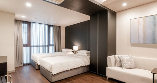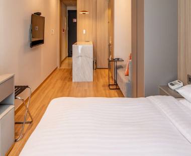 酒店配套设施聚焦 “休闲与便捷”,1 楼大堂设 24 小时前台,提供行李寄存、旅游咨询、韩语 / 英语双语服务及免费租借服务(包括雨伞、转换插头、儿童推车);3 楼设有小型健身区,配备跑步机、哑铃等基础器械,满足住客日常运动需求;顶楼打造露天休闲区,摆放藤椅与绿植,傍晚时分可在此吹风观景,俯瞰海云台街区夜景。此外,酒店提供每日客房清洁、洗衣代收服务,且内设免费停车场(需提前预约),自驾游客无需担忧停车问题。