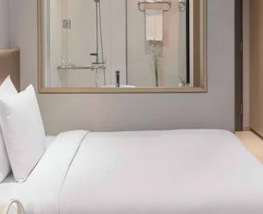 180 余间客房,涵盖标准大床房、高级双床房、行政套房及家庭连通房等多种房型,面积从 28㎡至 55㎡不等,可满足单人商旅、双人出游及家庭入住等多元需求。客房延续阿瓦尼品牌简约现代的设计风格,以浅灰与暖白为主色调,搭配原木家具与几何装饰画,营造整洁舒适的居住氛围。所有客房均配备品牌定制床垫与高支棉床品,保障优质睡眠体验;基础设施一应俱全,包括 55 英寸智能电视、迷你冰箱、电子保险箱、高速 WiFi 及 USB 充电接口,行政房型还额外提供行政酒廊使用权与免费洗衣服务。私人浴室采用干湿分离设计,配备恒温淋浴系统与品牌洗护套装,部分房型设有全景飘窗,可俯瞰城市街景。