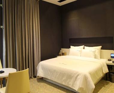 共设 78 间客房涵盖景观大床房、标准双床房、商务套房三种房型,面积 26-40㎡。客房采用现代简约风格,搭配浅木色家具与柔和灯光,营造舒适氛围。景观大床房配 1.8 米记忆棉床垫、50 英寸智能电视、迷你吧(含 2 瓶免费矿泉水)及高速 WiFi,部分高楼层房型可俯瞰南浦洞商圈景致;商务套房增设独立办公区与沙发休息区,满足商务需求。所有客房卫浴均为干湿分离设计,设恒温淋浴与智能马桶,提供品牌洗护套装。