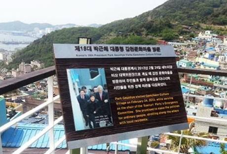 (2)观景台俯瞰:感受 “彩色村落” 的全景浪漫 沿着壁画村的小巷向上走,可抵达 “甘川文化村观景台”,这里是俯瞰整个村落的最佳位置: 站在观景台上,能看到五颜六色的民居错落分布在山坡上,壁画的鲜艳色彩与绿色植被相映成趣,远处的大海与釜山港清晰可见,“山海与彩色村落” 的组合,画面格外震撼,适合拍 “村落全景大片”。 观景台旁有 “网红打卡长椅”,坐在长椅上,以村落全景为背景,能拍出 “人在画中” 的文艺感,傍晚时分,夕阳将村落染成暖金色,氛围更浪漫。
