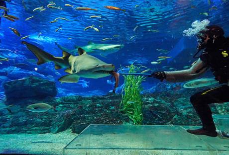 1.海洋生物喂食体验(付费可选) 若想更近距离与海洋生物互动,可选择 “付费喂食体验”(需提前在官网或场馆前台预约): 鳐鱼喂食:在工作人员指导下,戴上手套,用专用饵料投喂鳐鱼,鳐鱼会温顺地靠近,用腹部的 “吸盘” 轻轻吸附饵料,触感柔软,过程安全又有趣; 企鹅喂食:仅限 16 岁以上游客参与,穿上专业的防寒服进入企鹅展区,用小鱼投喂企鹅,近距离观察企鹅进食的模样,还能与企鹅合影(场馆提供拍照服务); 注意事项:喂食体验有固定时段与人数限制,需提前确认;参与时需遵守工作人员的指导,避免伤害海洋生物。