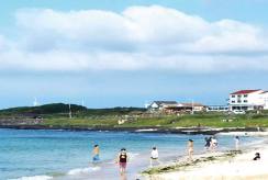 2. 牛岛:济州东部的 “海上珍珠” 牛岛是济州东部海域的一座火山岛,因形状酷似卧牛而得名,也是济州必打卡的海岛景点。这里保留着原始的海岛风貌,海水清澈见底,从浅蓝到深蓝层层递进,搭配白色沙滩与黑色礁石,构成绝美的海岸画卷。