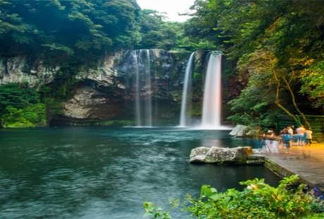天地渊瀑布位于西归浦市,是济州岛三大瀑布之一,因瀑布水流从 “天地渊”(传说中连接天地的深渊)落下而得名。瀑布周围被茂密的温带森林环绕,空气清新,宛如 “林间秘境”,适合夏季避暑、秋季赏枫。