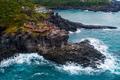 独立岩位于济州岛西南部海岸,是因火山喷发与海浪侵蚀形成的 “海上孤石”,高约 20 米,矗立在湛蓝海面上,宛如 “守护大海的巨人”,还因韩剧《大长今》取景而闻名。