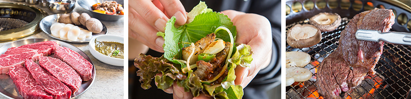 景福宫烤肉店对食材的挑选堪称严苛,始终秉持着高品质的原则。其牛肉精选自美国优质牧场,每一块肉都有着漂亮的大理石花纹,霜降雪花肉更是其中的佼佼者。当这片顶级的霜降雪花肉入口的瞬间,那近乎融化的柔软触感,搭配肉本身自带的淡淡清甜,仿佛一场舌尖上的梦幻之旅,令人一旦品尝,便难以忘怀。五花肉同样毫不逊色,新鲜原味的厚片猪五花,在烤盘上慢慢烤制,直至表皮金黄酥脆,剪成小块后,鲜嫩多汁的口感瞬间在口中迸发,充分展现出韩国风情的独特韵味。 除了这些经典肉品,店内还提供丰富多样的选择。肩颈肉因少油腻且肉质鲜香柔嫩,备受顾客青睐,尤其深受中国食客的喜爱。蘑菇拼盘也别具特色,除了各类新鲜蘑菇,还有自制手打的肉饼、黑胡椒味浓郁的香肠以及咸香十足的培根卷,丰富的组合为烤肉体验增添了更多层次。