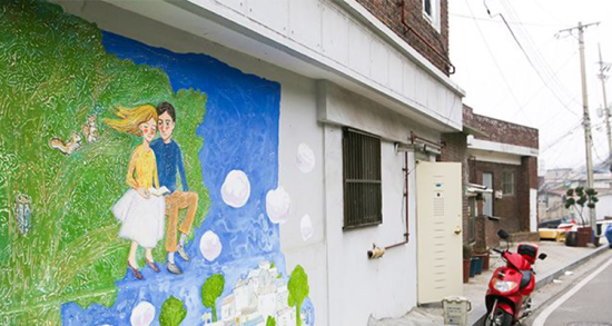 这里的建筑多为上世纪中后期修建的低层住宅,墙面因年久失修而布满裂痕,部分房屋甚至因居民搬离而闲置;狭窄的巷弄里,电线随意缠绕在电线杆上,偶尔能看到几位老人坐在门口晒太阳,整个街区弥漫着一种缓慢而沉寂的氛围。 彼时的梨花洞,虽紧邻弘大、梨大等年轻活力的区域,却像是被隔绝在 “青春之外”—— 鲜少有游客驻足,本地年轻人也鲜少踏足,只有世代居住在这里的居民,守着熟悉的巷弄与回忆。但这片街区并非没有 “潜力”:错落有致的老房屋形成了独特的空间层次,狭窄的巷弄藏着 “一步一景” 的可能性,而居民们对街区的情感,更是让这里充满了生活的温度。人们期待着一种力量,能唤醒这片沉睡的老街区,让它在保留历史韵味的同时,跟上城市发展的脚步。 艺术唤醒:墙面作画,巷弄变美术馆 改变始于一群艺术家与当地居民的共同努力。最初,几位热爱街头艺术的创作者来到梨花洞,希望用画笔为老墙面 “化妆”;没想到这一想法得到了居民的积极响应 —— 有人主动让出自家的墙面,有人帮忙清理墙面杂质,甚至有居民带着孩子一起参与绘画。